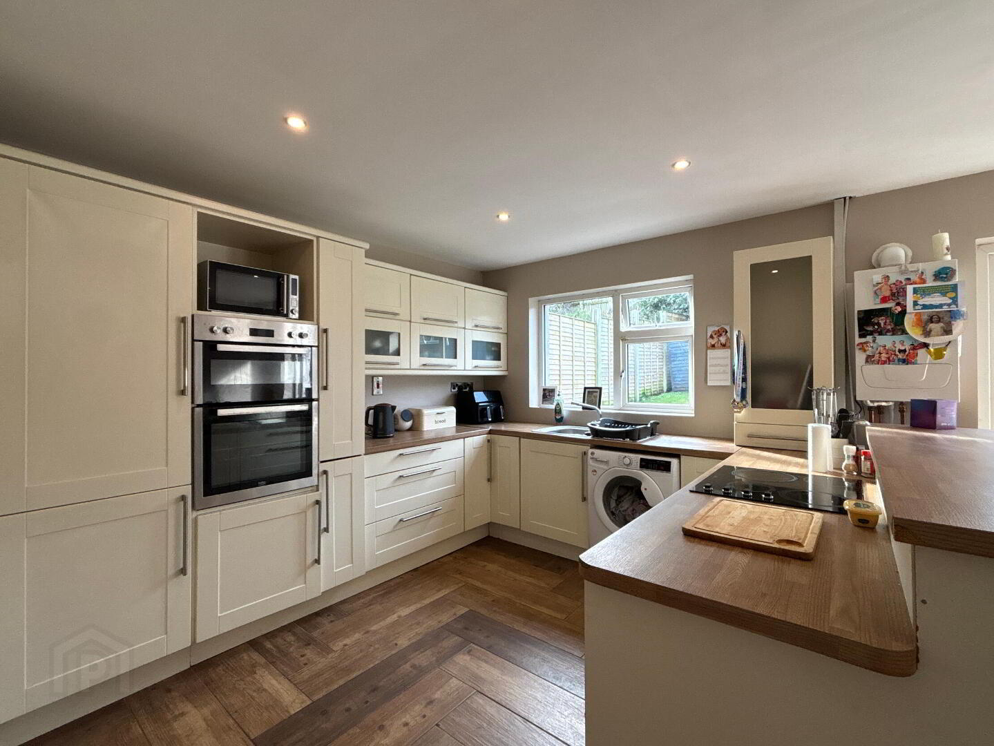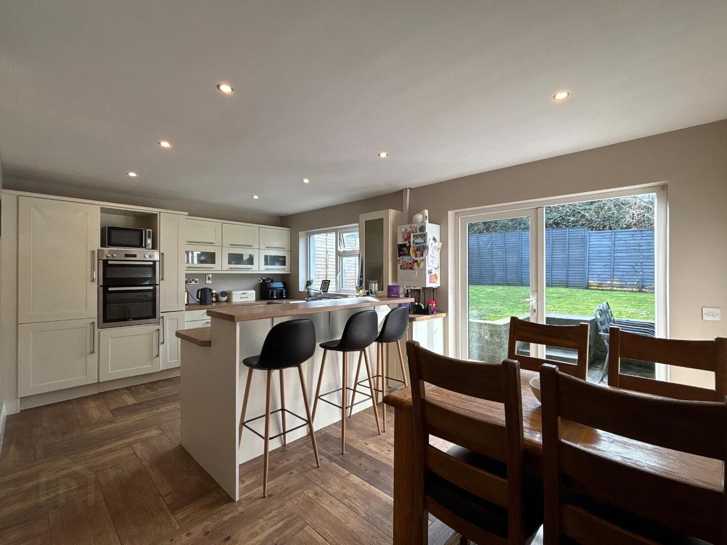 3.40m x 5.75m Timber flooring with units at eye and floor level along with plumbing for the sink and washing machine. You'll find ample light provided by the large windows and double doors overlooking the rear garden.