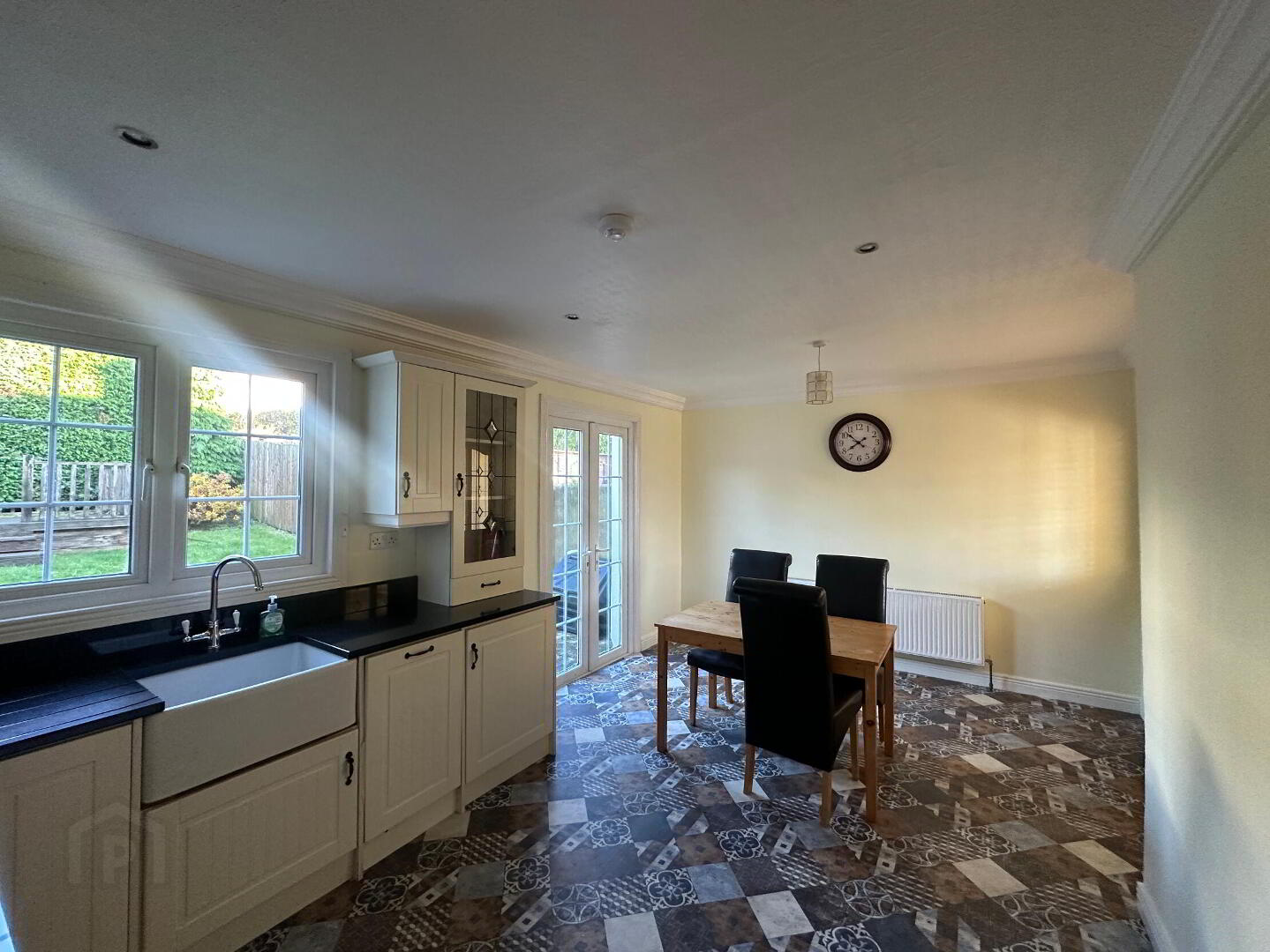 5.25m x 3.50m Built in units at eye and floor level, electric oven with hob and extractor. tiled splashback, Belfast sink, fitted dishwasher, laminate floor, shelved hotpress. Double doors to spacious back garden