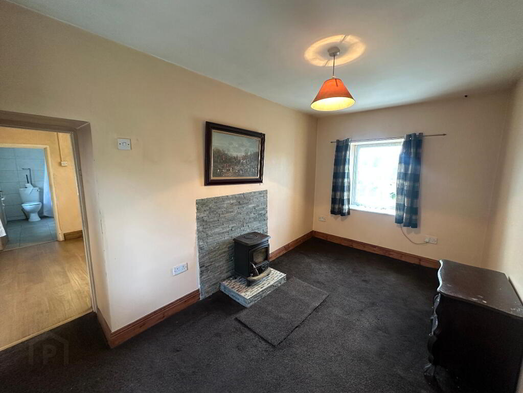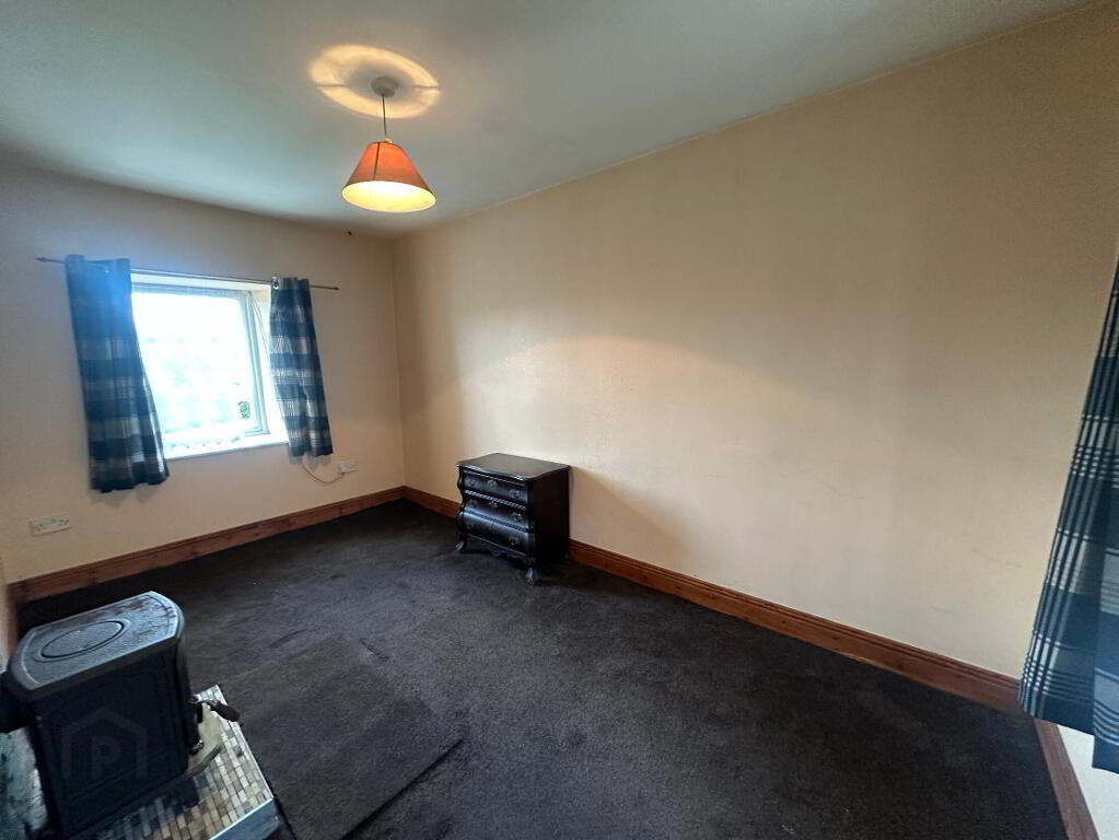 2.50m x 4.50m Sitting room/Bedroom one- fitted carpet, solid fuel stove with stone effect surround, dual aspect windows