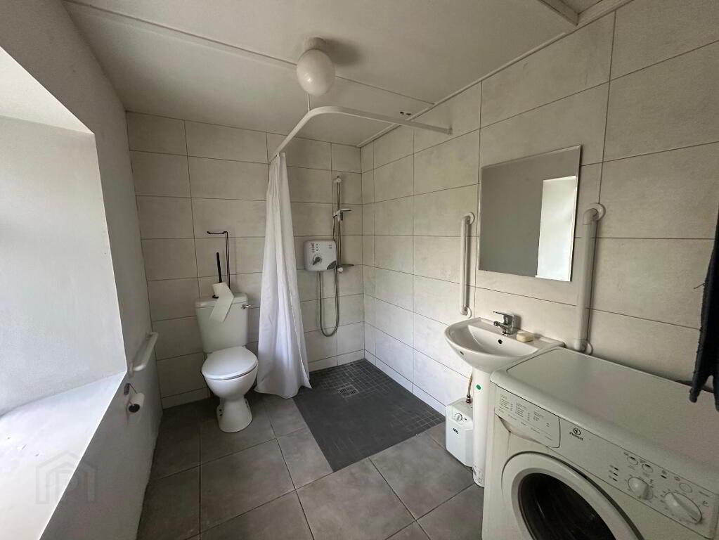 2.60m x 1.80m Wall to ceiling tiled, Wc, whb, disabled accessible shower, plumbed for washing machine