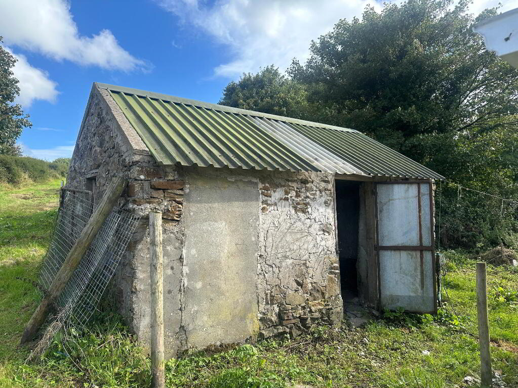 2.20m x 4.00m Stone built with galvanised roof, two dog pens, concrete floor, electricity