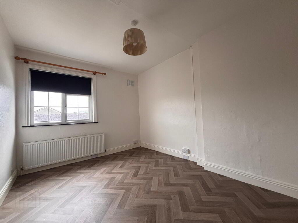 2.60m x 4.20m Laminate flooring with built in wardrobe and a large window overlooking the front.