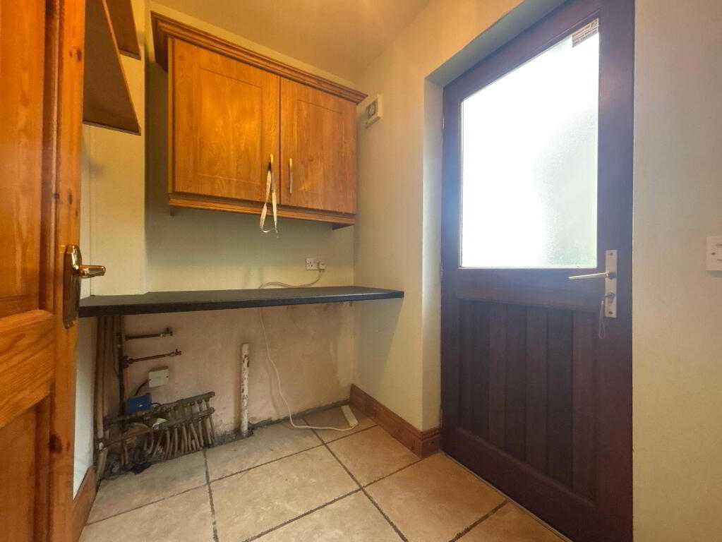 2.00m x 1.50m Tiled flooring with units at eye level and a door to the side parking and rear. Plumbed for washer and dryer.