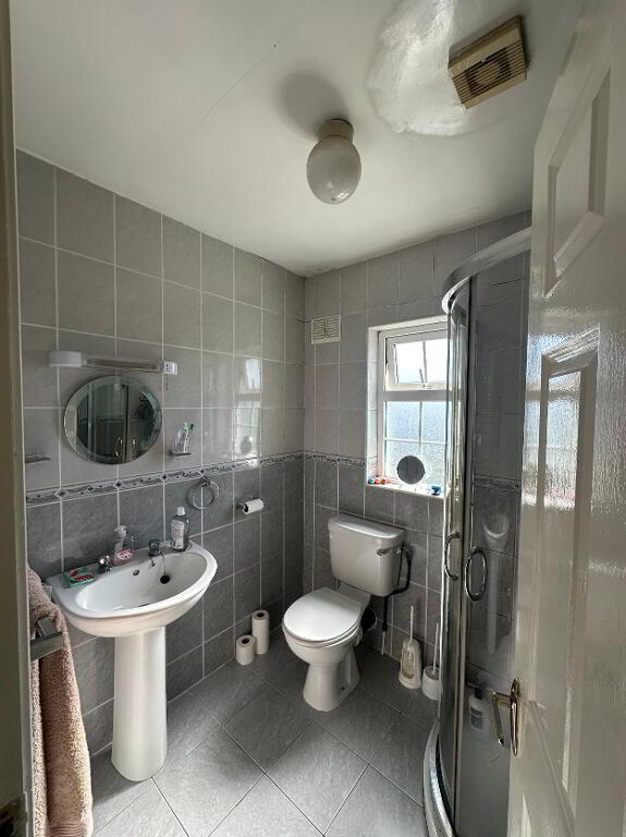 1.70m x 1.98m Wall to ceiling tiled, Wc, whb, electric shower