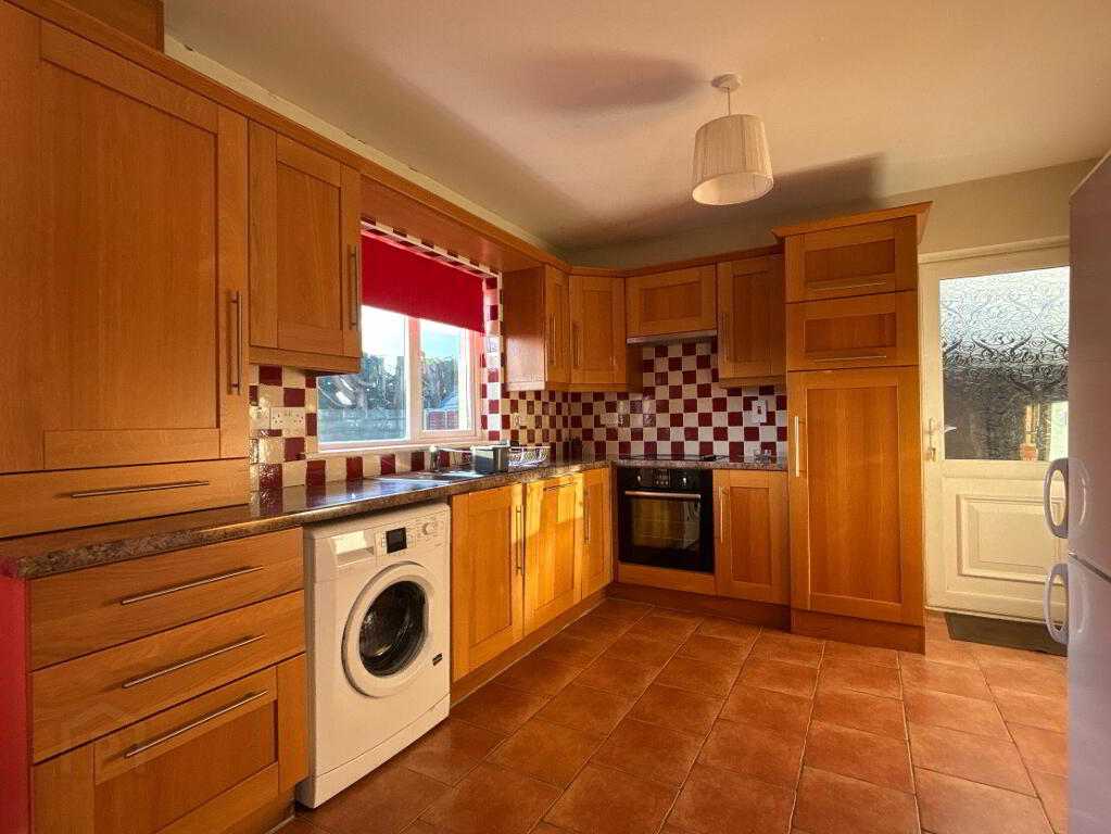 3.10m x 5.75m Tiled flooring and backsplash with units at eye and floor level along with built in appliances and plumbing for washer. Door to rear