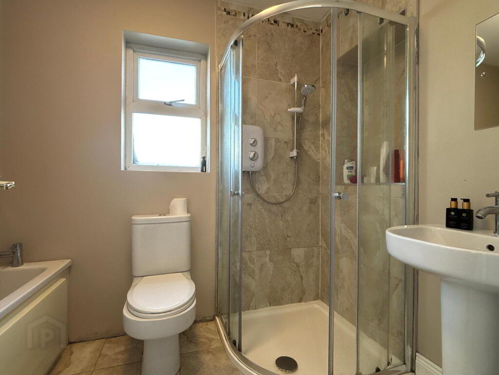 1.70m x 2.60m Tiled flooring and backsplash along with a W.C, W.H.B, Electric shower and bath.