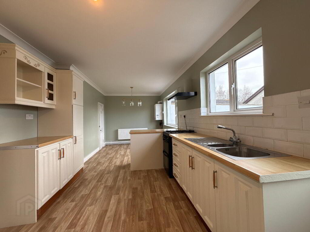 2.90m x 6.65m Laminate flooring with a tiled backsplash and units at eye and floor level. Door to rear and windows overlooking the rear garden