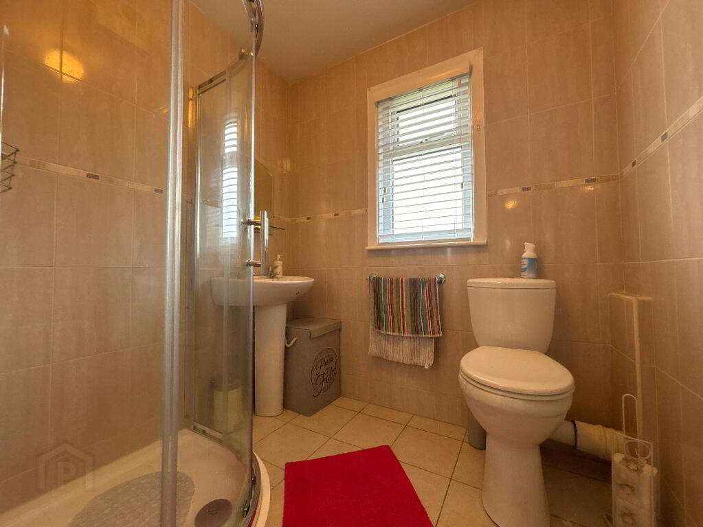 2.30m x 1.85m Tiled floor to ceiling, W.C, W.H.B and triton electric shower.