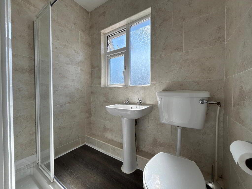 1.60m x 1.80m Timber flooring, tiled walls, wc, whb, triton electric shower